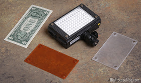 Compact and Adjustable: The Z96 is extremely compact (5 x 1.8 x 3") and adaptable. It comes with an adjustable mounting head or bracket that allows slide-on mounting to a DSLR hot shot or to any 1/4" treaded device, i.e. a tripod or a light stand. It also comes with two magnetic snap-on filters —one is for diffusion and the other is an orange filler that converts the 5600º Kelvin LED lights to 3200º K. I usually leave both the diffusion and the orange filter on the Z96 for my NightScape photos. That's because I typically shoot my images with a 4000º K White Balance. This gives my skies a slightly bluish hue and the 3200º K light sources gives my foreground subjects and slightly warmer hue that contrasts nicely with the night sky.
